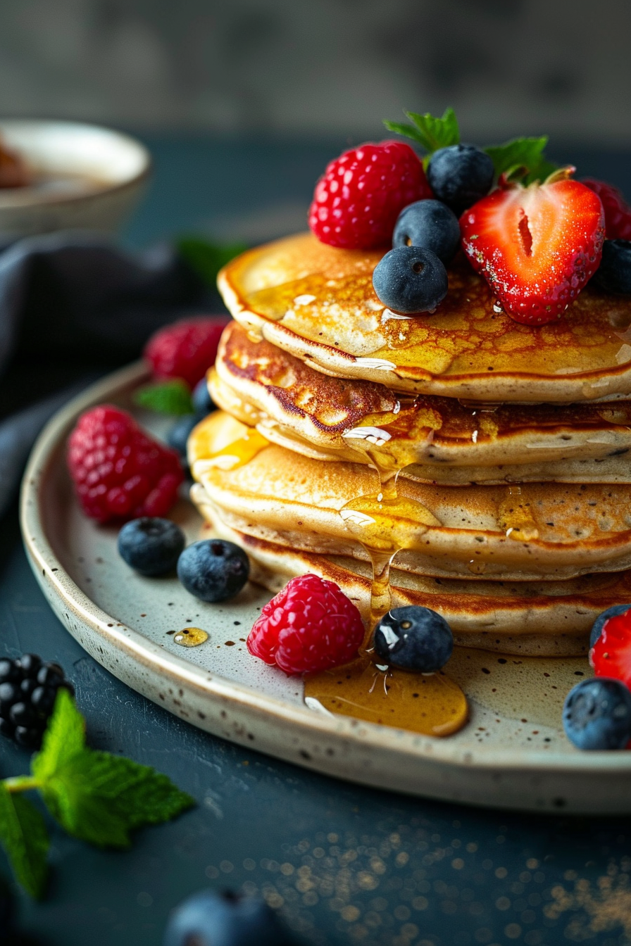 Im Vergleich zu klassischen Pancakes liefern sie mehr Nährstoffe bei weniger leeren Kalorien. Kombiniert mit frischen Beeren entstehen zusätzliche Vitamine, Antioxidantien und natürliche Frische, während Honig eine sanfte, natürliche Süße beisteuert.